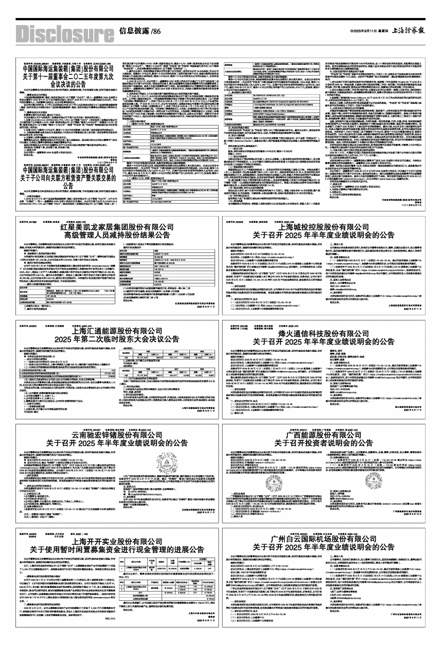 股票代码:000039、299901 股票简称:中集集团、中集H代 公告编号:【CIMC】2025-086