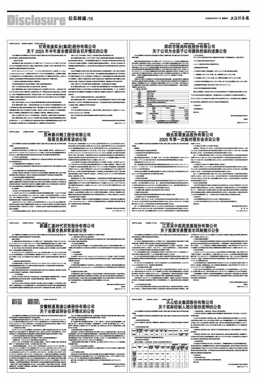 证券代码:002532 证券简称:天山铝业 公告编号:2025-055