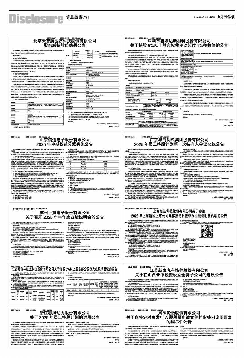 2025年5月20日,公司收到先进制造基金及其一致行动人京津冀基金出具的《关于北京天智航医疗科技股份有限公司的股份减持计划告知函》,公司于2025年5月21日在上海证券交易所网站(www.sse.com.cn)披露了《股东减持股份计划公告》(公告编号:2025-025)。截至2025年9月11日,本次减持计划时间已届满。根据先进制造基金及其一致行动人京津冀基金出具的股份减持完成告知函,本次减持计划时间区间内,先进制造基金通过集中竞价交易的方式减持本公司无限售流通股股份2,255,147股,占公司总股本的0.50%;先进制造基金通过大宗交易的方式减持本公司无限售流通股股份300,000股,占公司总股本的 0.07%。京津冀基金通过集中竞价交易的方式减持本公司无限售流通股股份2,255,303股,占公司总股本的0.50%;京津冀基金通过大宗交易的方式减持本公司无限售流通股股份300,000股,占公司总股本的0.07%。