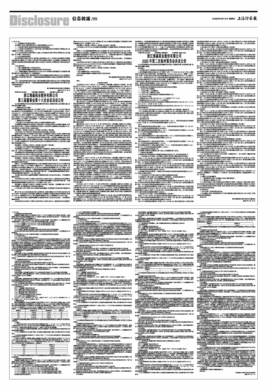2、浙江海森药业股份有限公司(以下简称“公司”)于2025年8月30日在《上海证券报》《证券日报》《证券时报》和巨潮资讯网(www.cninfo.com.cn)披露了《关于2025年第二次临时股东会增加临时提案暨股东会补充通知的公告》(公告编号:2025-042)。单独持有公司32.31%股份的股东浙江海森控股有限公司于2025年8月29日以书面形式提议将《关于关联方中标公司新厂区建设项目(一期)及签订〈建设项目施工总承包合同〉暨关联交易的议案》作为临时提案,提交公司2025年第二次临时股东会审议。除增加前述临时提案外,公司于2025年8月15日披露的《关于召开2025年第二次临时股东会的通知》其他相关事项均保持不变;