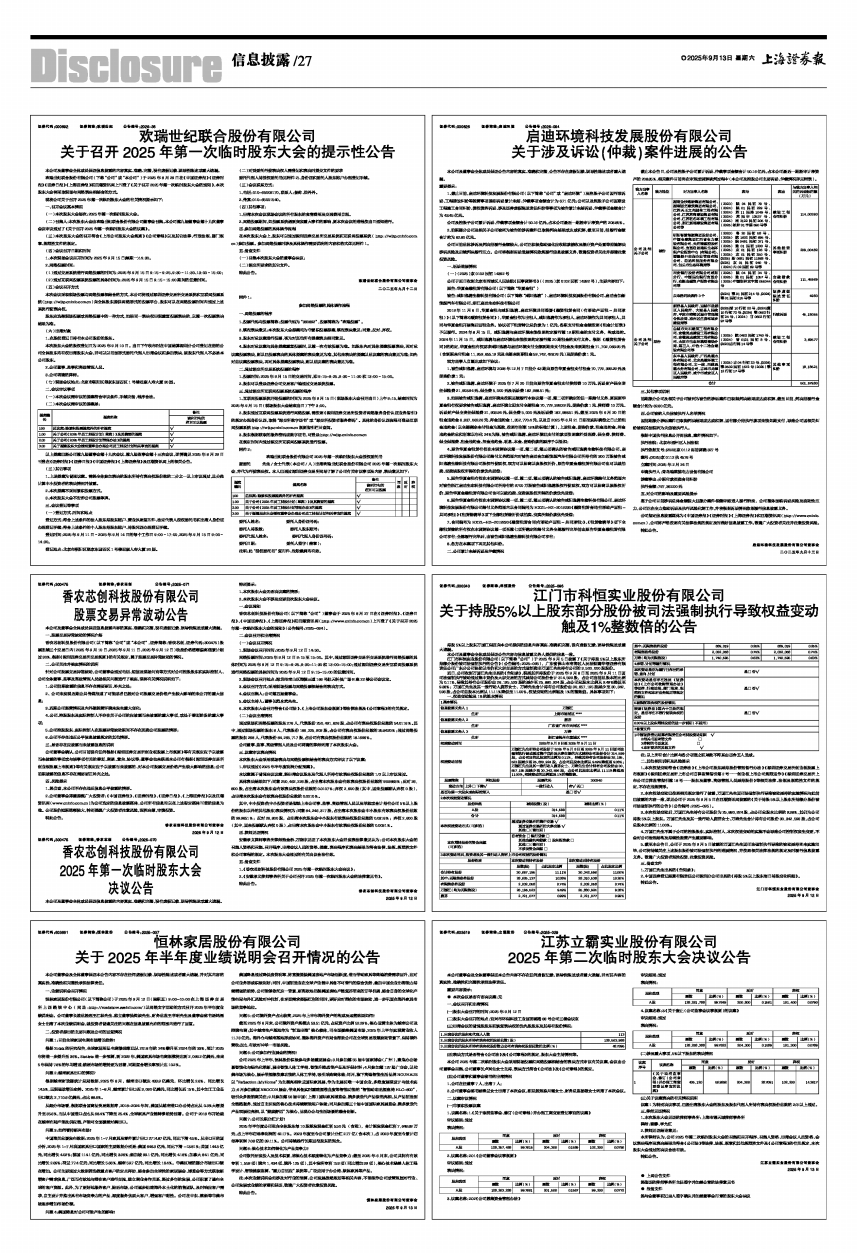 香农芯创科技股份有限公司(以下简称“公司”)董事会于2025年8月27日在《证券时报》、《证券日报》、《中国证券报》、《上海证券报》和巨潮资讯网(http://www.cninfo.com.cn)上刊登了《关于召开2025年第一次临时股东大会的通知》(公告编号:2025-064)。
