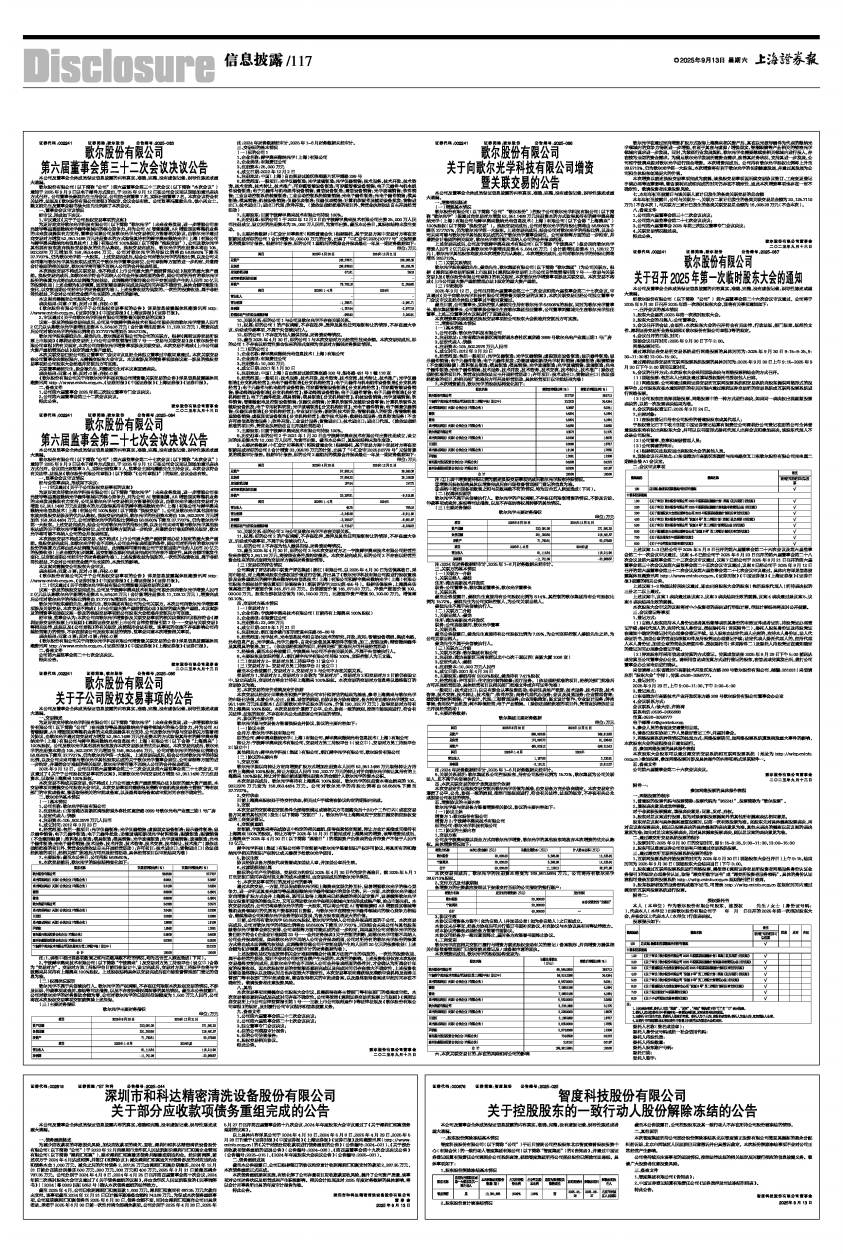 证券代码:002241 证券简称:歌尔股份 公告编号:2025-087