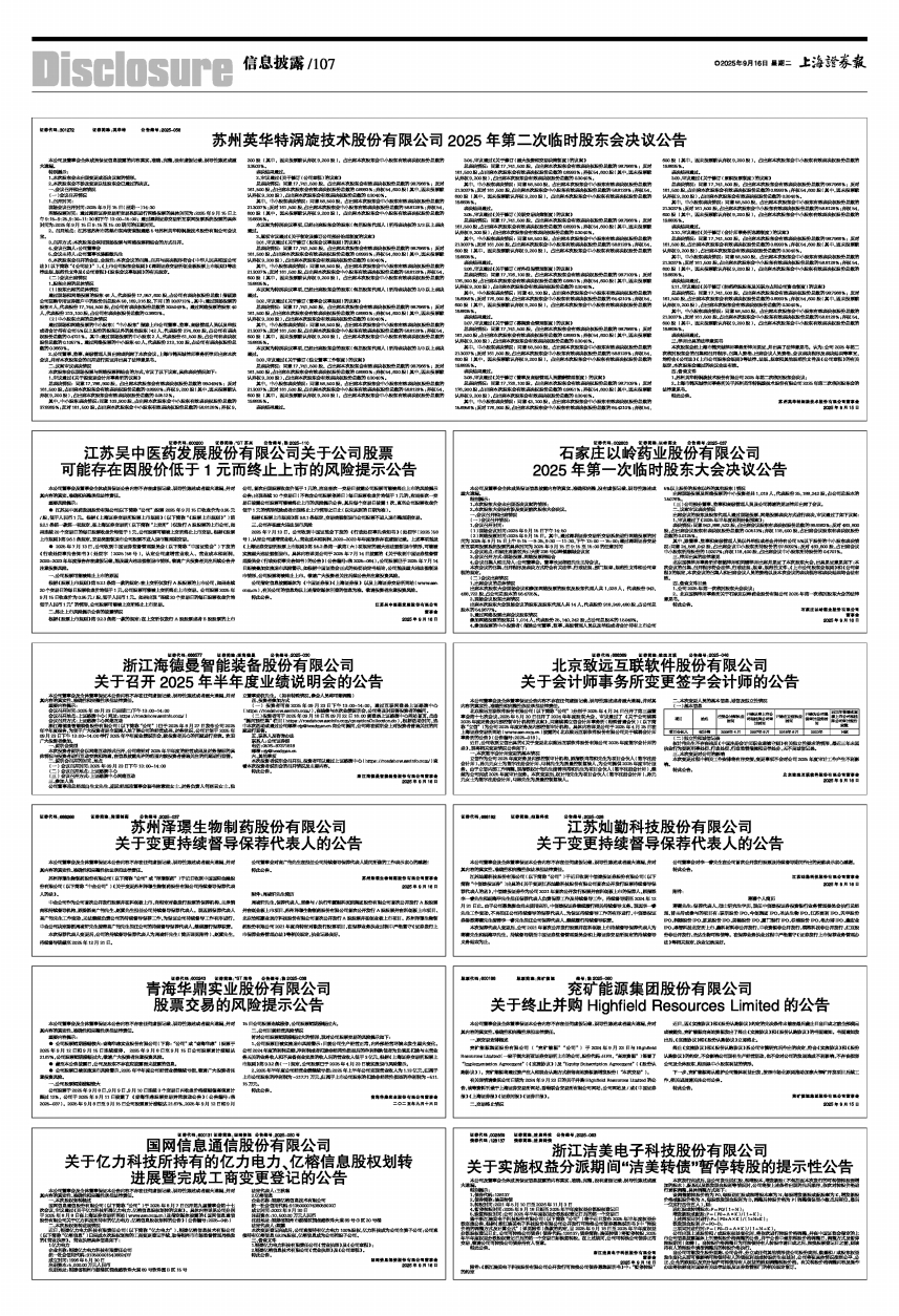 根据《股票上市规则》第9.2.1条第一款的规定:在上交所仅发行A股股票的上市公司,如果连续20个交易日的每日股票收盘价均低于1元,公司股票可能被上交所终止上市交易。公司股票2025年9月15日收盘价为0.95元/股,低于人民币1元。如果出现“连续20个交易日的每日股票收盘价均低于人民币1元”的情形,公司股票可能被上交所终止上市交易。