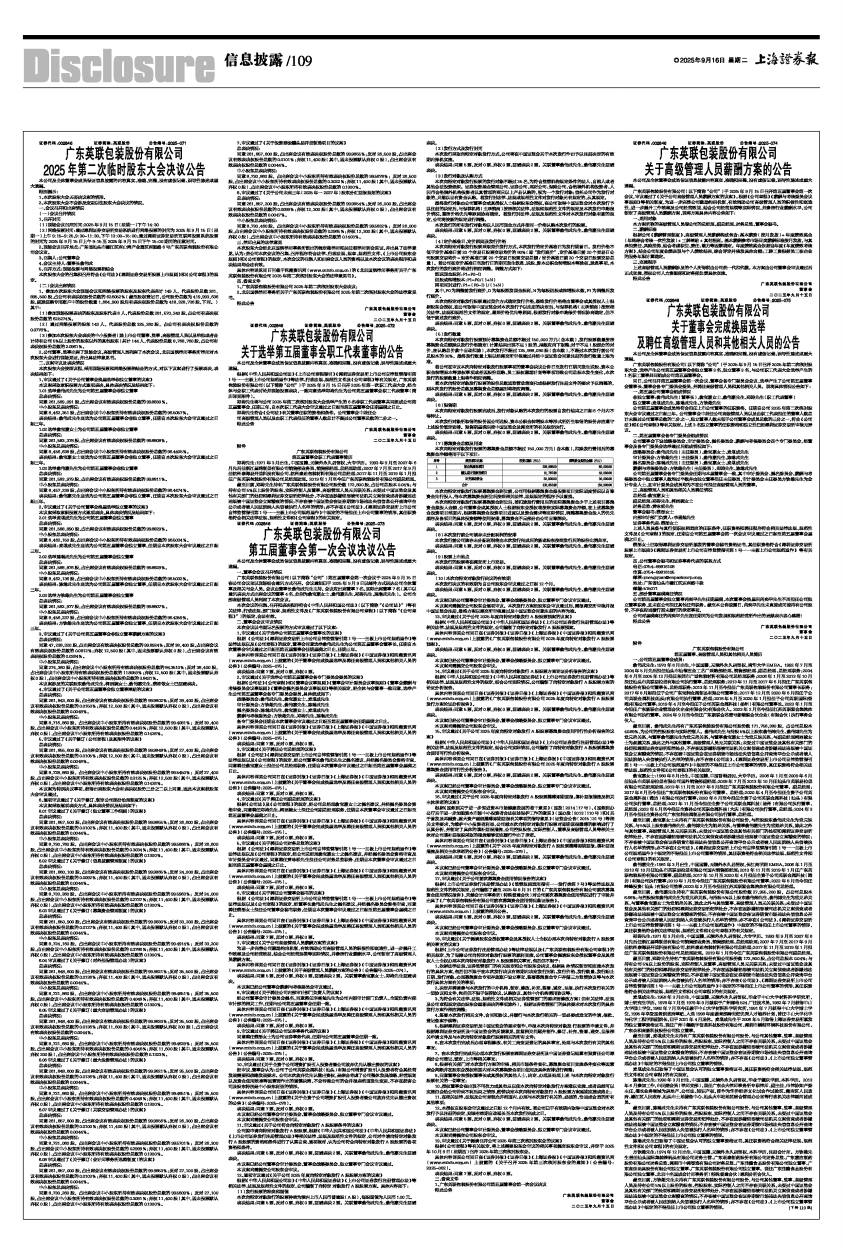 广东英联包装股份有限公司(以下简称“公司”)于2025年9月15日召开2025年第二次临时股东大会,选举产生公司第五届董事会非独立董事3名、独立董事3名,与公司职工代表大会选举产生的1名职工董事共同组成公司第五届董事会。