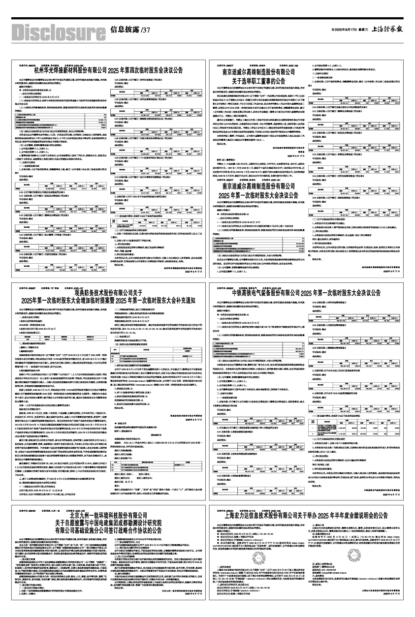 证券代码:688485 证券简称:九州一轨 公告编号:2025-053
