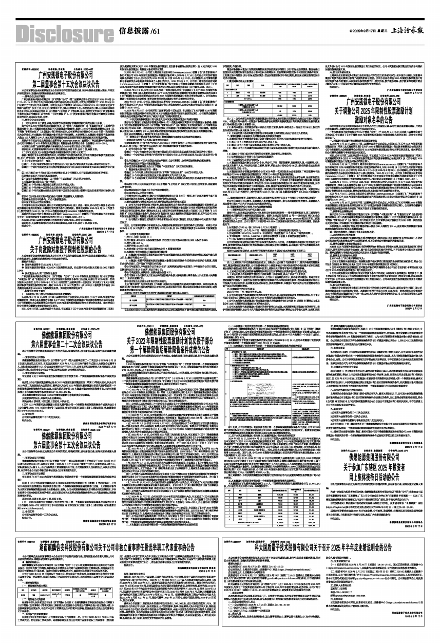 ● 限制性股票授予日:2025年9月15日