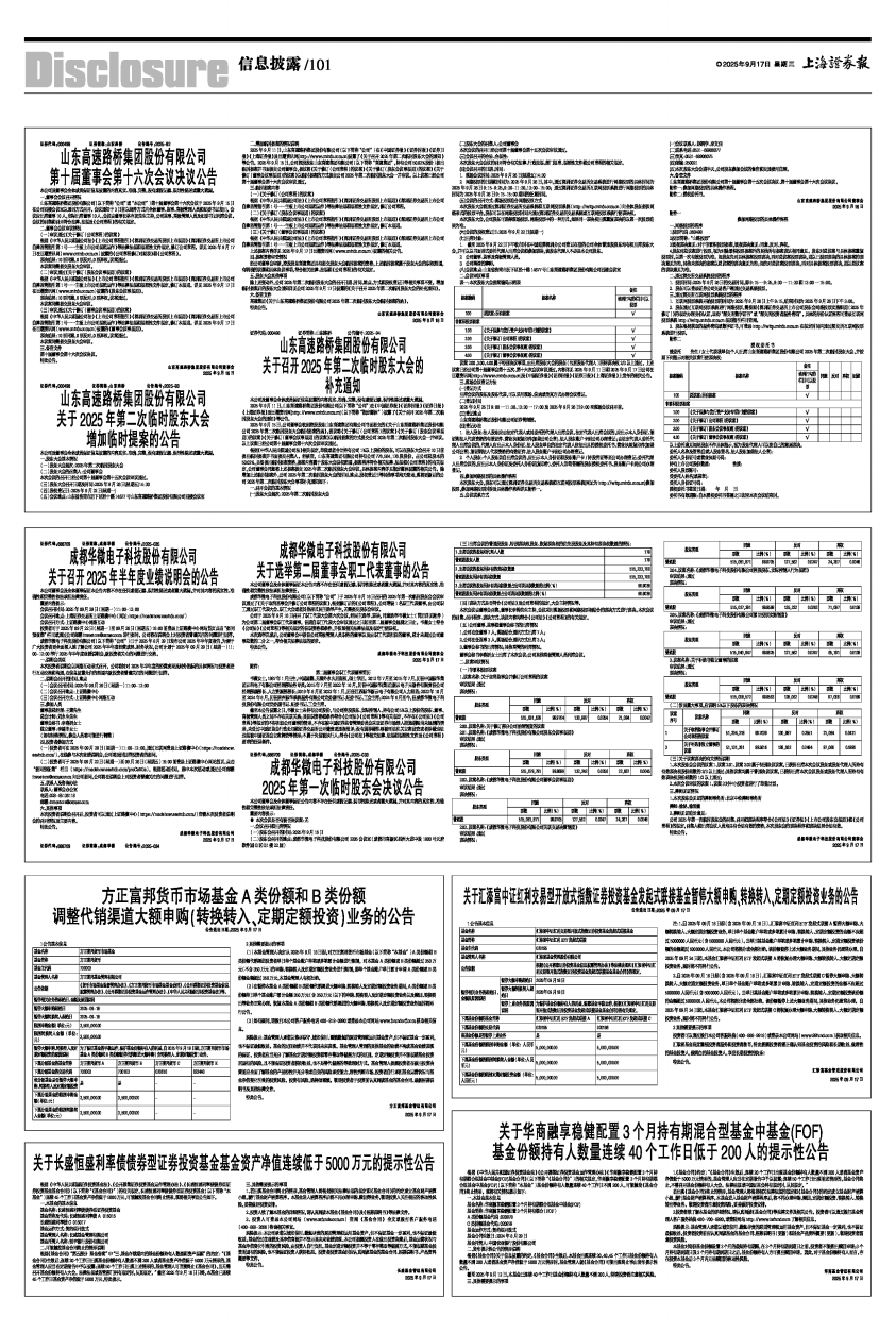 2025年9月11日,山东高速路桥集团股份有限公司(以下简称“公司”)在《中国证券报》《证券时报》《证券日报》《上海证券报》及巨潮资讯网(http://www.cninfo.com.cn)(以下简称“指定媒体”)披露了《关于召开2025年第二次临时股东大会的通知》等公告。
