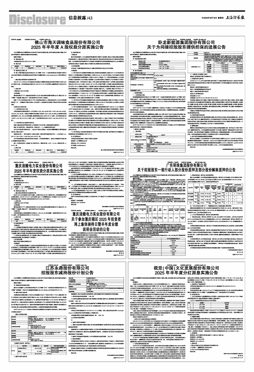● 佛山市海天调味食品股份有限公司(以下简称“公司”)H股股东的现金红利派发不适用本公告,具体可参阅公司在香港联合交易所有限公司披露易网站(www.hkexnews.hk)发布的相关公告。