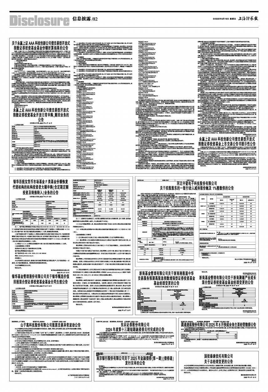 关于永赢上证AAA科技创新公司债交易型开放式指数证券投资基金基金份额折算结果的公告