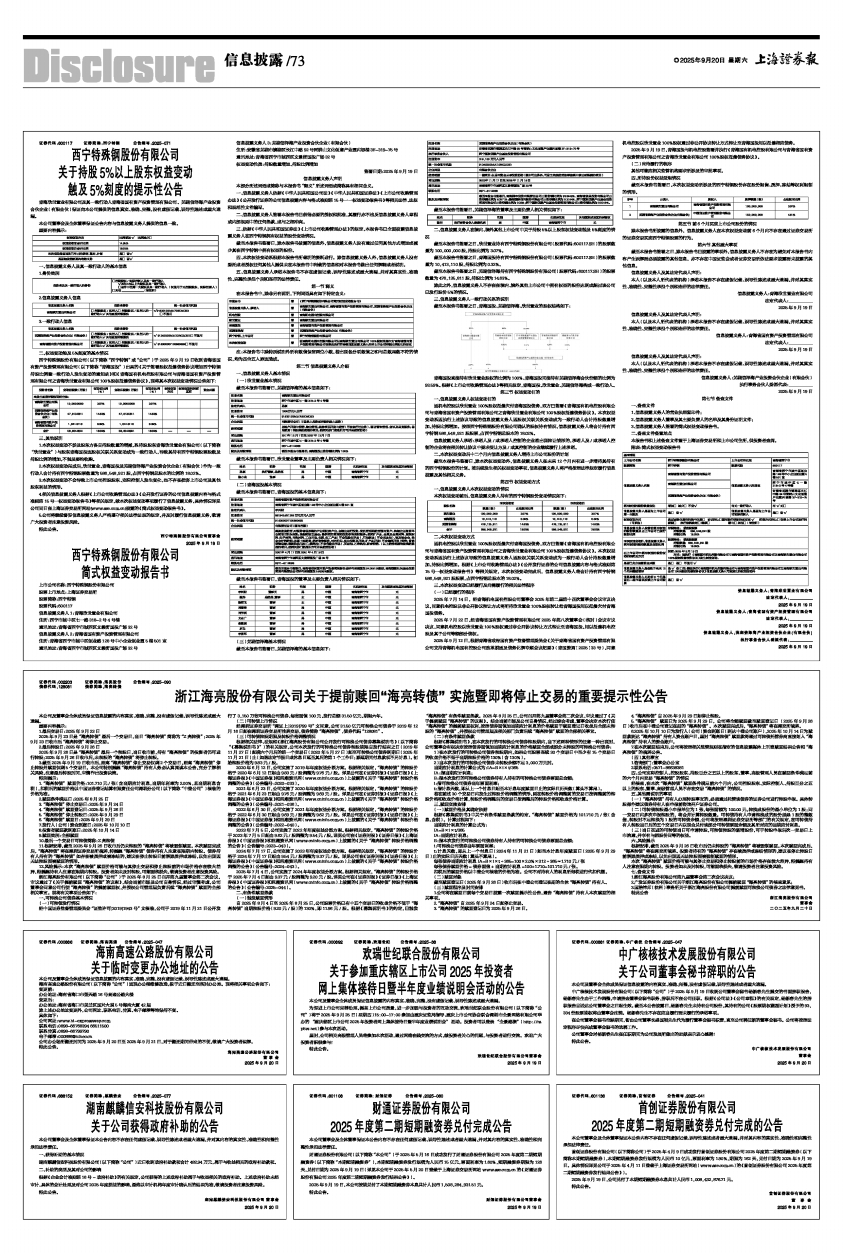 西宁特殊钢股份有限公司(以下简称“西宁特钢”或“公司”)于2025年9月19日收到青海省国有资产投资管理有限公司(以下简称“青海国投”)出具的《关于签署股权抵偿债务协议增加西宁特钢持股比例暨一致行动人发生变动的通知函》和《青海国有机电控股有限公司与青海省国有资产投资管理有限公司之青海欣世置业有限公司100%股权抵偿债务协议》,现将其本次权益变动情况公告如下: