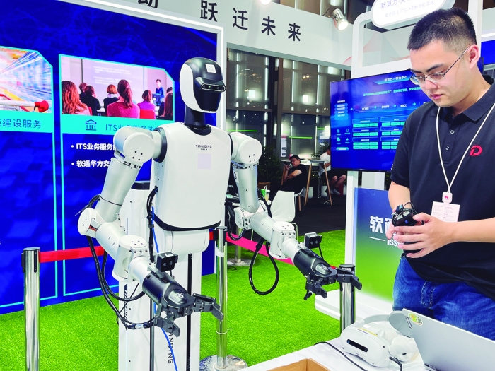 在软通动力的展台,一款机器人吸引眼球。“在实验室里,这款机器人可以通过精准控制撕开显卡的密封袋,并将其夹取出来放到栅格之中。”软通动力展台负责人向上海证券报记者介绍。