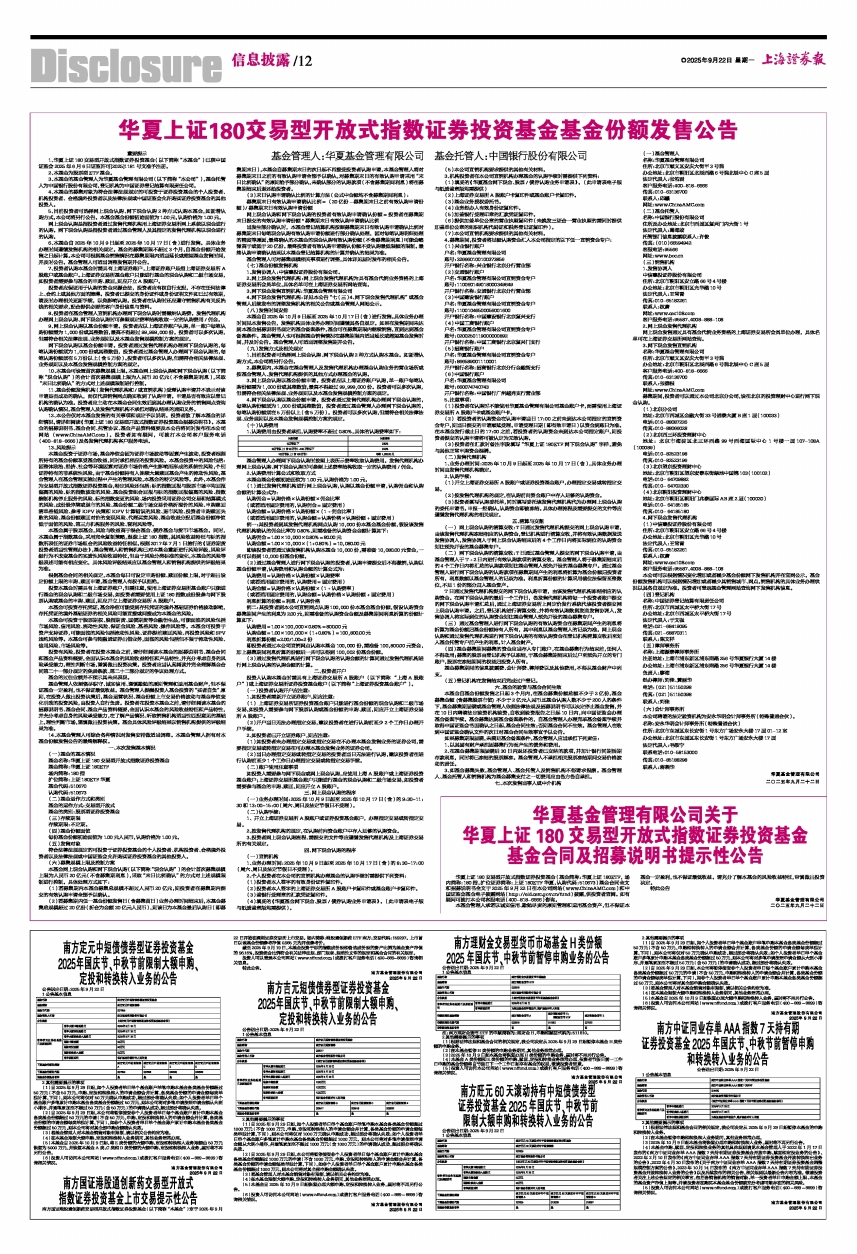 12、本公告仅对本基金发售的有关事项和规定予以说明。投资者欲了解本基金的详细情况,请详细阅读《华夏上证180交易型开放式指数证券投资基金招募说明书》。本基金的招募说明书、基金合同、托管协议、基金产品资料概要及本公告将同时发布在本公司网站(www.ChinaAMC.com)。投资者如有疑问,可拨打本公司客户服务电话(400-818-6666)及各发售代理机构客户服务电话。