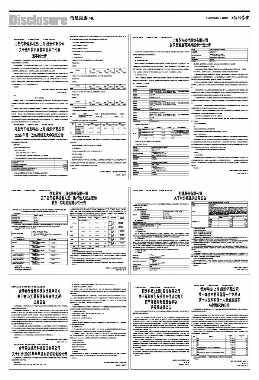 用友汽车信息科技(上海)股份有限公司(以下简称“公司”)于2025年9月23日召开的2025年第一次临时股东大会审议通过了《关于取消监事会、变更经营范围并修订〈公司章程〉及其附件的议案》,为完善公司治理结构,结合公司实际情况,公司董事会人数由6名增加至8名,新增1名职工代表董事和1名独立董事。