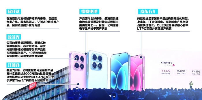 小米17系列是国产手机冲击高端的缩影,而其身后,一条高效创新的供应链体系正在加速构建。近期,多家小米产业链公司透露最新业务进展,不少公司借机“秀肌肉”,展示其在消费电子领域的新产品与新技术布局。