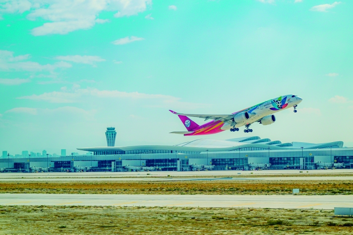 9月15日,一架飞机从乌鲁木齐天山国际机场起飞。近年来,新疆积极参与共建西部陆海新通道,全力推进铁路网、公路网、航空网和商贸物流网建设,推动“陆海内外联动、东西双向互济”对外开放新格局,形成联通亚欧的立体通道。