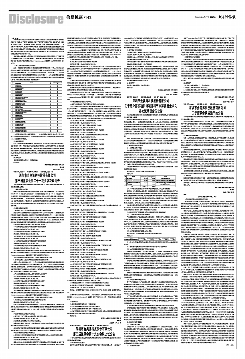 深圳市金奥博科技股份有限公司(以下简称“公司”)第三届董事会第二十一次会议于2025年9月26日在公司会议室召开。本次会议通知于2025年9月22日通过电子邮件、电话等方式向各位董事发出,会议采取现场结合通讯方式召开,会议应参加董事8人,实际参加表决董事8人,其中梁金刚先生、张洪文先生、肖忠良先生以通讯方式参会。会议由公司董事长明刚先生召集并主持,公司部分监事及高级管理人员列席了本次会议。本次会议的召集、召开和表决程序符合《中华人民共和国公司法》及《公司章程》的有关规定,合法有效。