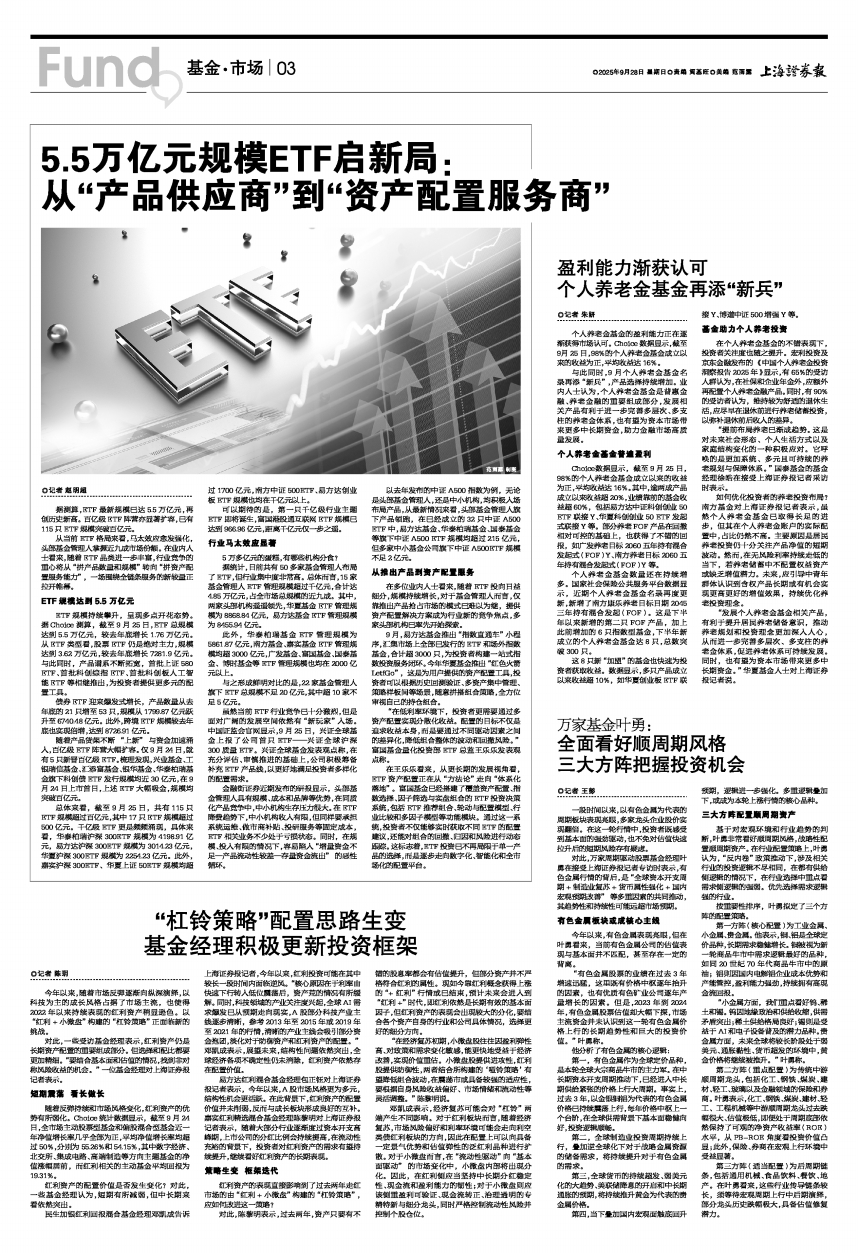 在多位业内人士看来,随着ETF投向日益细分,规模持续增长,对于基金管理人而言,仅靠推出产品抢占市场的模式已难以为继,提供资产配置解决方案成为行业新的竞争焦点,多家头部机构已率先开始探索。