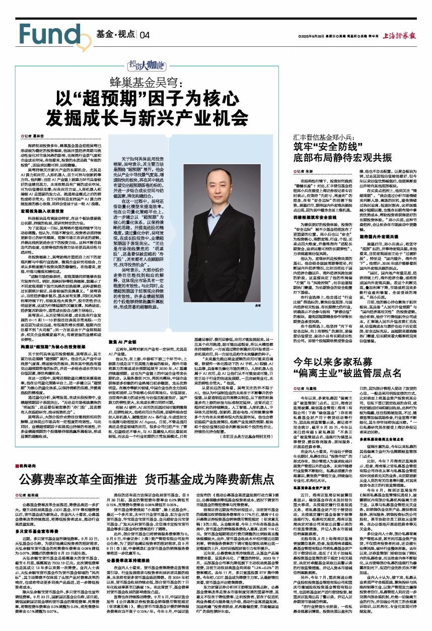 汇丰晋信基金郑小兵:筑牢“安全防线”