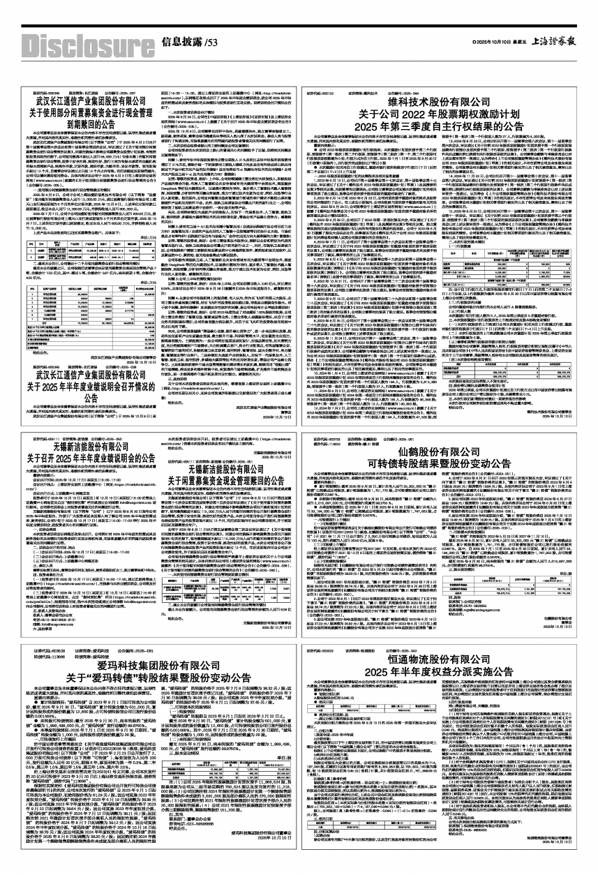 截至2025年9月30日,累计共有人民币33,302,000元“鹤21转债”已转换成公司股票,累计转股数量为1,751,770股,占可转债转股前公司已发行股份总额的0.2481%。其中,自2025年7月1日至2025年9月30日期间,累计共有人民币33,194,000元“鹤21转债”已转换成公司股票,累计转股数量为1,747,922股,占可转债转股前公司已发行股份总额的0.2476%。