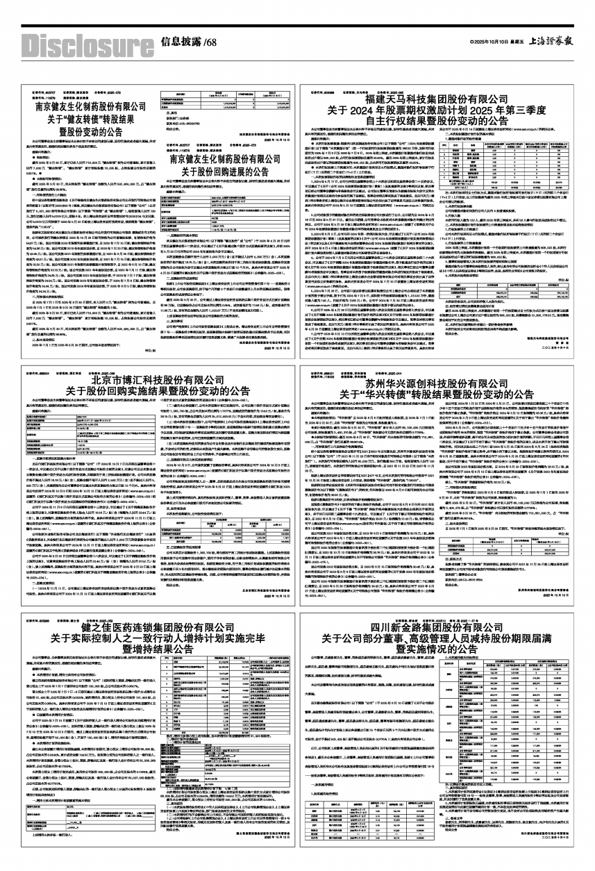 截至2025年9月30日,累计已有人民币719,000元“健友转债”转为公司普通股,累计回售人民币7,000元“健友转债”。“健友转债”累计转股股数18,035股,占转股前公司股份总额的0.001%。●
