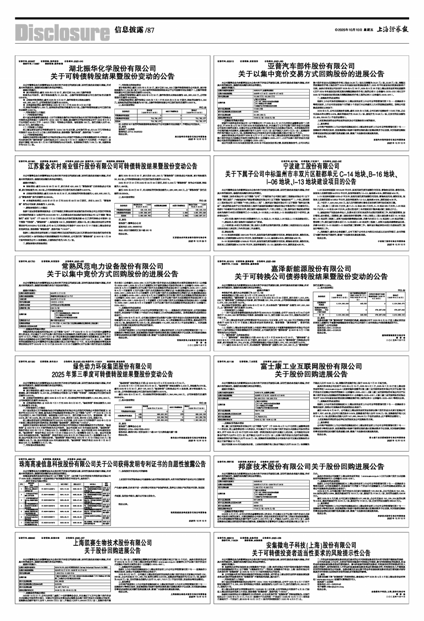 2025年第三季度可转债转股结果暨股份变动公告 -