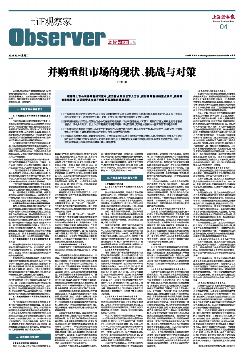 并购重组市场的现状、挑战与对策