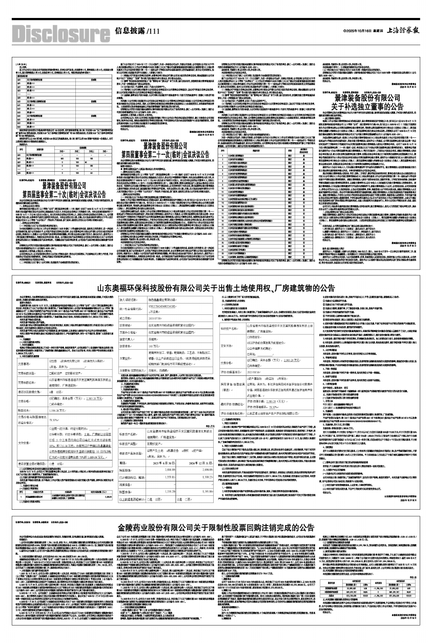 交易简要内容:2025年10月15日,山东奥福环保科技股份有限公司(以下简称“公司”)召开了第四届董事会第七次会议,审议通过了《关于公司拟出售土地使用权、厂房建筑物的议案》,公司拟向临邑晶鑫镜业有限公司(以下简称“晶鑫镜业公司”)出售公司拥有的不动产权证号为鲁(2017)临邑县不动产权第0001187号和鲁(2021)临邑县不动产权第0014510号以及鲁(2023)临邑县不动产权第0040442/0040444/0040443/0040388/0040447号坐落于山东省德州市临邑县经济开发区富民路南首东侧的土地使用权、厂房建筑物,经双方协商,本次转让价格预计为2,385.20万元(含税)。