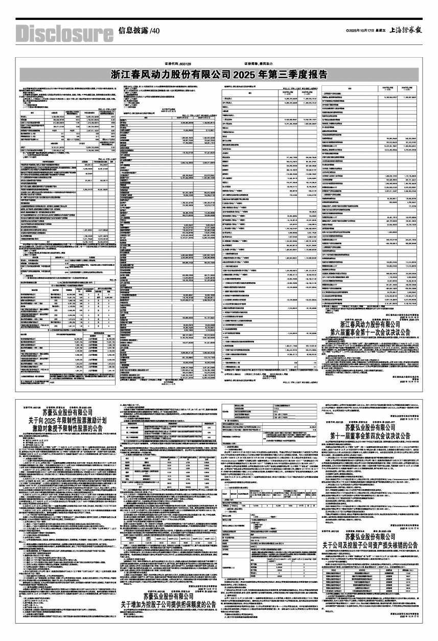 公司2025年第三季度报告真实、准确、完整地反映了公司财务状况和经营成果。公司2025年第三季度报告所载资料不存在任何虚假记载、误导性陈述或重大遗漏,董事会对其内容的真实性、准确性和完整性承担法律责任。具体内容详见公司同日在上海证券交易所网站(www.sse.com.cn)以及公司指定信息披露媒体上披露的《浙江春风动力股份有限公司2025年第三季度报告》。