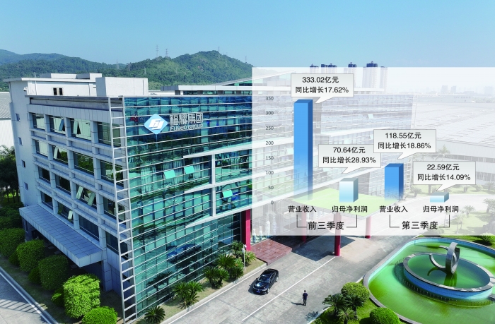 三季报显示,今年1月至9月,福耀玻璃实现营业收入333.02亿元,同比增长17.62%;实现归属于上市公司股东的净利润70.64亿元,同比增长28.93%。第三季度实现营业收入118.55亿元,同比增长18.86%;实现归属于上市公司股东的净利润22.59亿元,同比增长14.09%。
