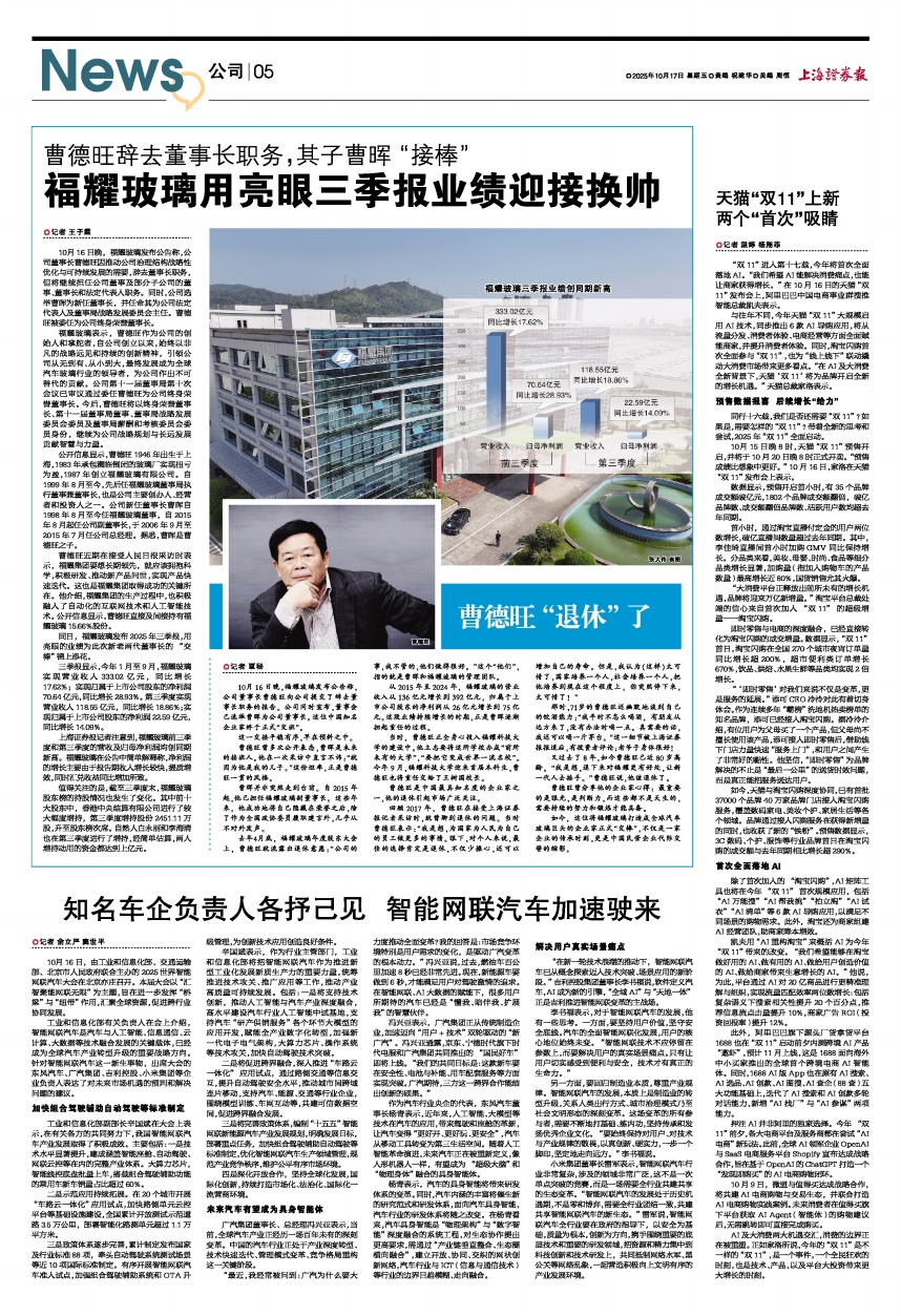 如今,这位将福耀玻璃打造成全球汽车玻璃巨头的企业家正式“交棒”,不仅是一家企业的传承时刻,更是中国民营企业代际交替的缩影。