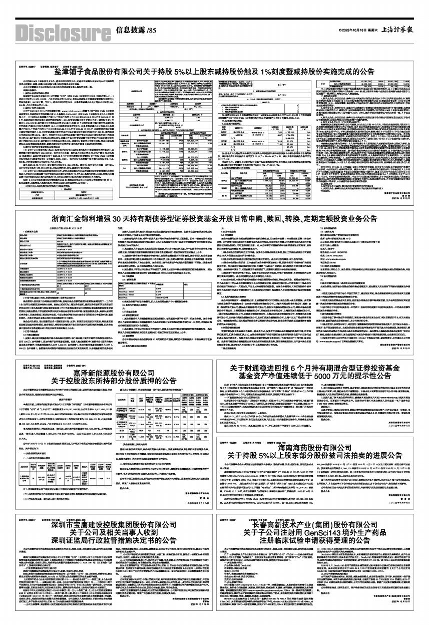 (2)公司于近日收到副总经理李汉明先生、财务总监杨峰先生出具的《减持股份计划实施完毕的告知函》,李汉明先生通过集中竞价交易方式共减持公司股份70,875股,其减持计划已完成;杨峰先生通过集中竞价交易方式共减持公司股份26,200股,剩余50股本次减持计划期间不再减持。