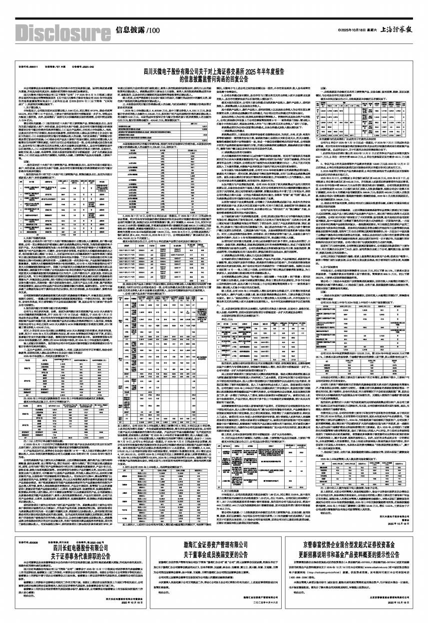 四川天微电子股份有限公司关于对上海证券交易所2025年半年度报告