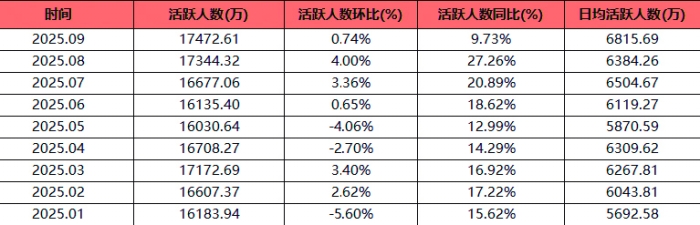 9月A股市场延续积极态势,投资者交易热情高涨,证券服务类App用户活跃度随之水涨船高。易观千帆数据显示,9月证券服务类App月活跃用户总数达到1.75亿人,环比增长0.74%,同比提升9.73%,创下年内月度活跃用户数新高。