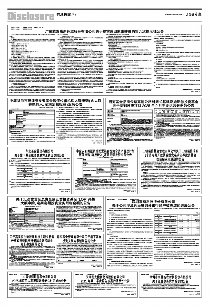 关于基础设施项目2025年9月主要运营数据的公告 -
