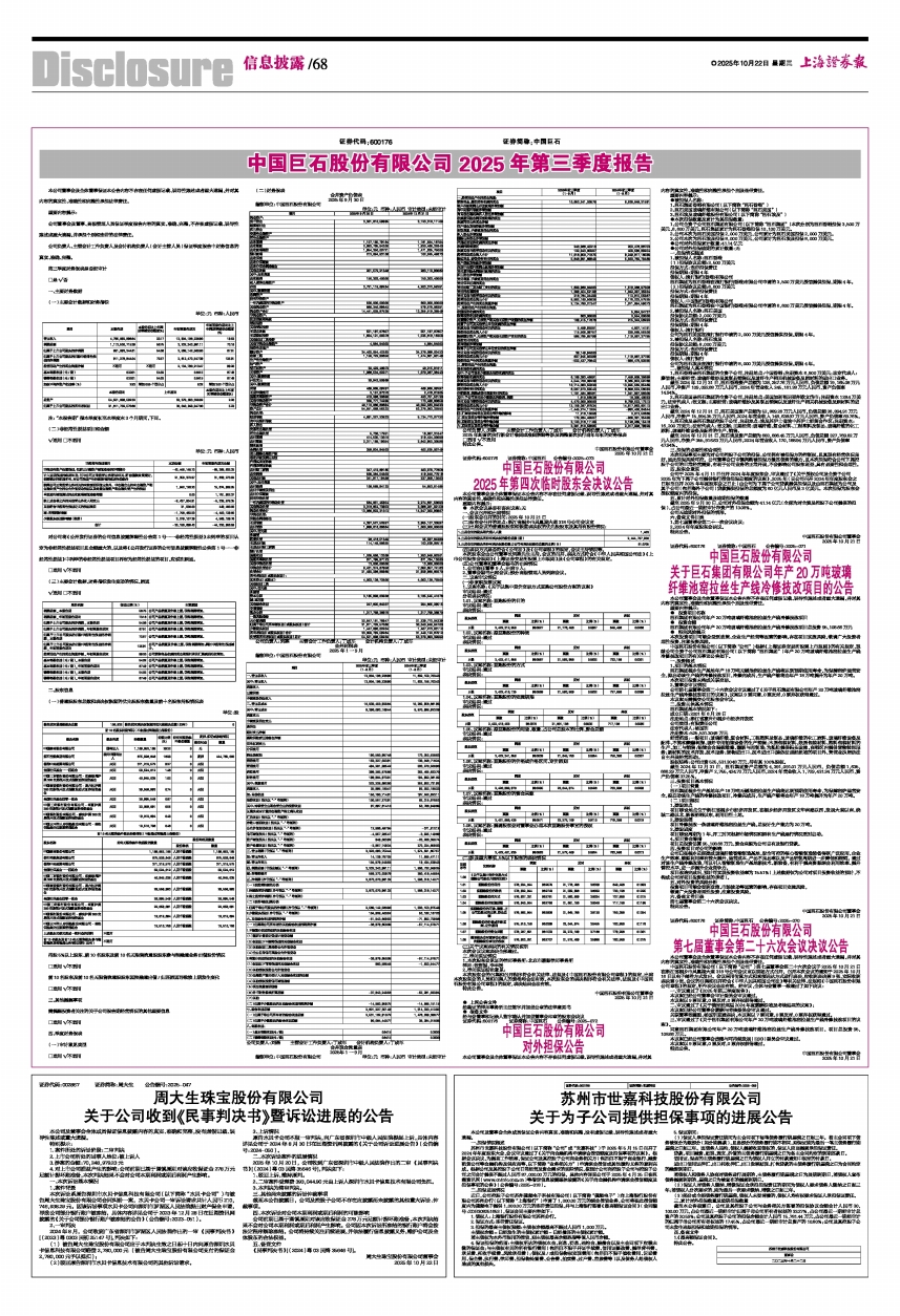 中国巨石股份有限公司(以下简称“公司”)第七届董事会第二十六次会议于2025年10月21日在浙江省桐乡市凤凰湖大道318号公司会议室以现场方式召开,召开本次会议的通知于2025年10月16日以电子邮件方式发出。会议采用传真方式和直接送达方式进行表决,应收到表决票9张,实际收到表决票9张。会议的召集和召开符合《中华人民共和国公司法》等有关法律、法规和《中国巨石股份有限公司章程》的规定,所作决议合法有效。经审议,全体与会董事一致通过了如下决议: