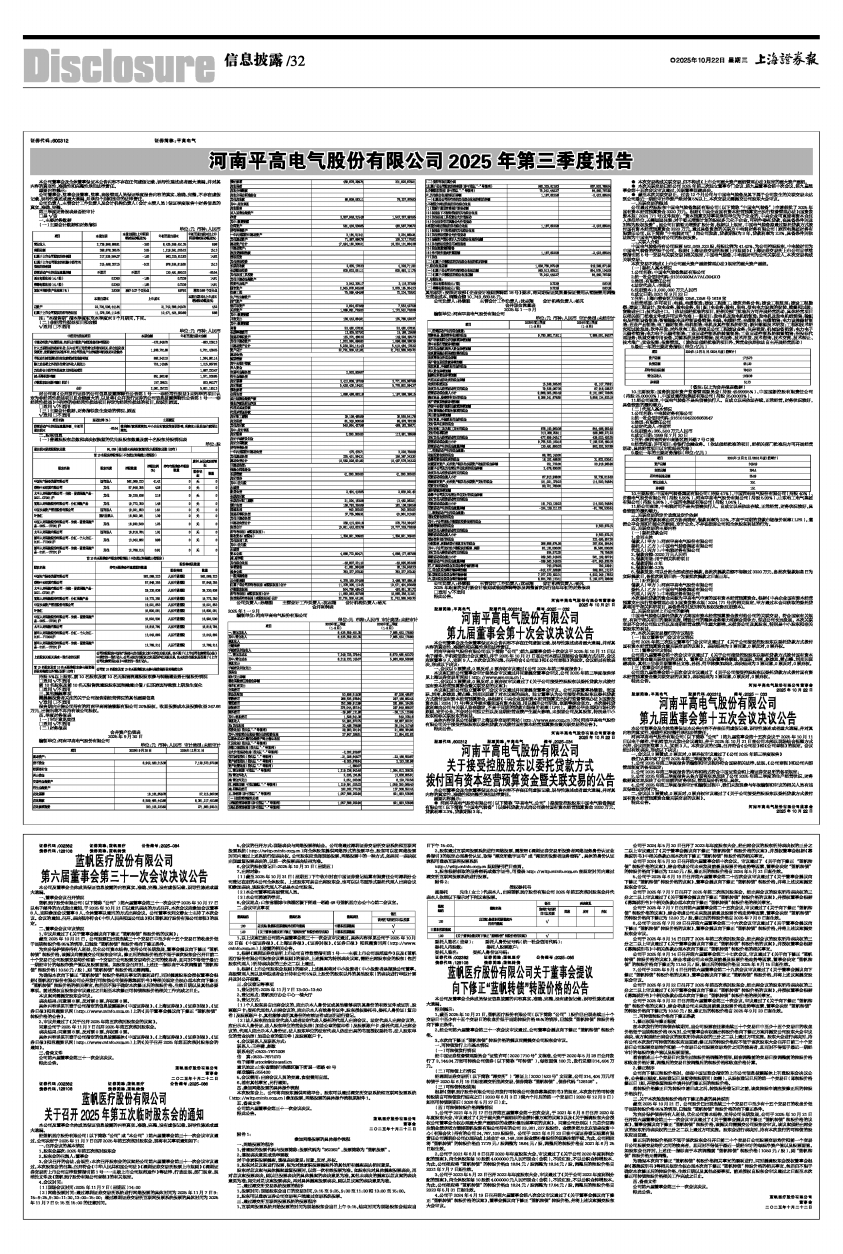 蓝帆医疗股份有限公司(以下简称“公司”)第六届董事会第三十一次会议于2025年10月17日以电子邮件的方式发出通知,于2025年10月21日以通讯表决的方式召开。本次会议应参加会议董事8人,实际参加会议董事8人,全体董事以通讯的方式出席会议。公司董事长刘文静女士主持了本次会议。会议的通知、召开、表决程序符合《中华人民共和国公司法》和《蓝帆医疗股份有限公司章程》的规定。