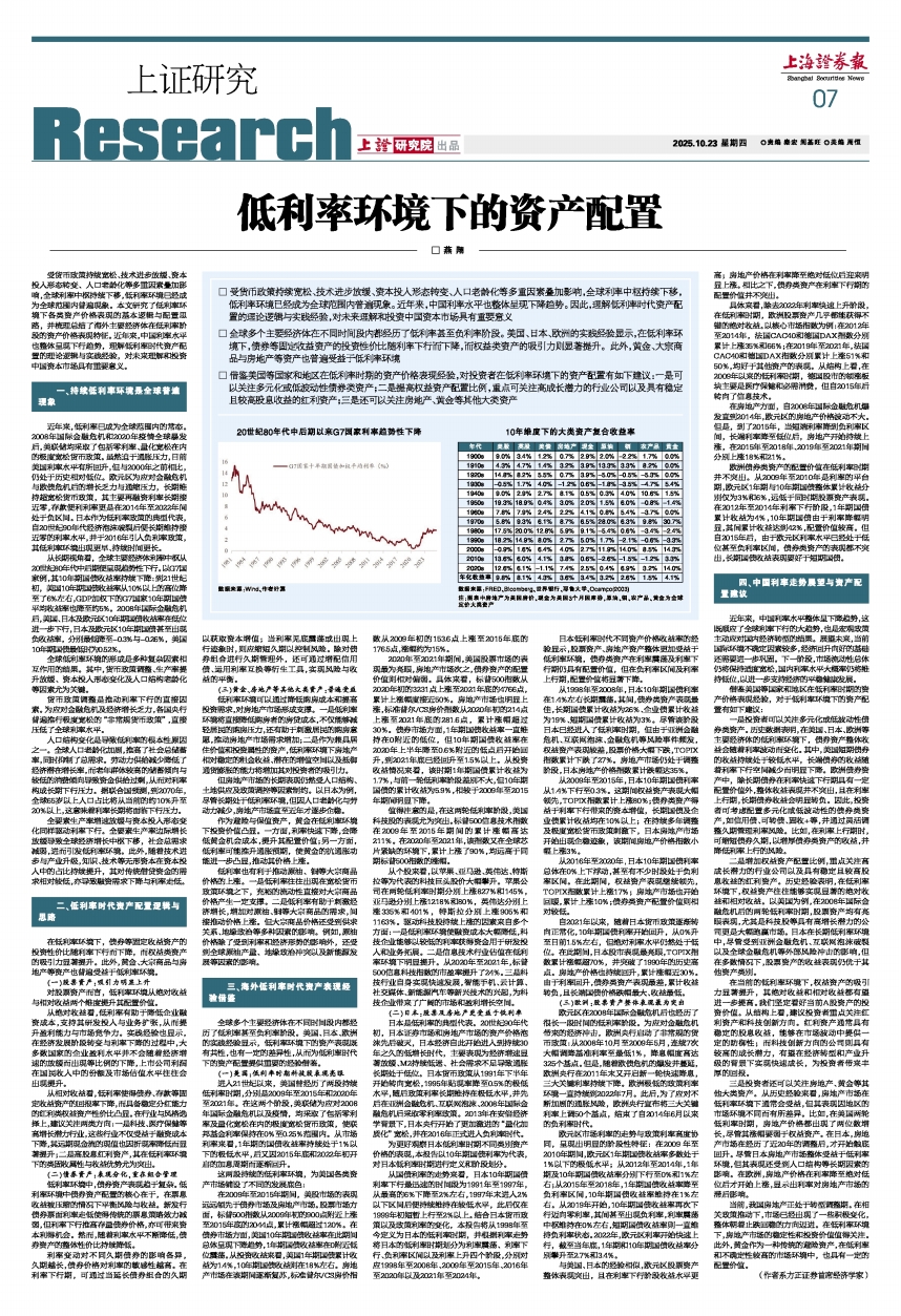 □ 全球多个主要经济体在不同时间段内都经历了低利率甚至负利率阶段。美国、日本、欧洲的实践经验显示,在低利率环境下,债券等固定收益资产的投资性价比随利率下行而下降,而权益类资产的吸引力则显著提升。此外,黄金、大宗商品与房地产等资产也普遍受益于低利率环境