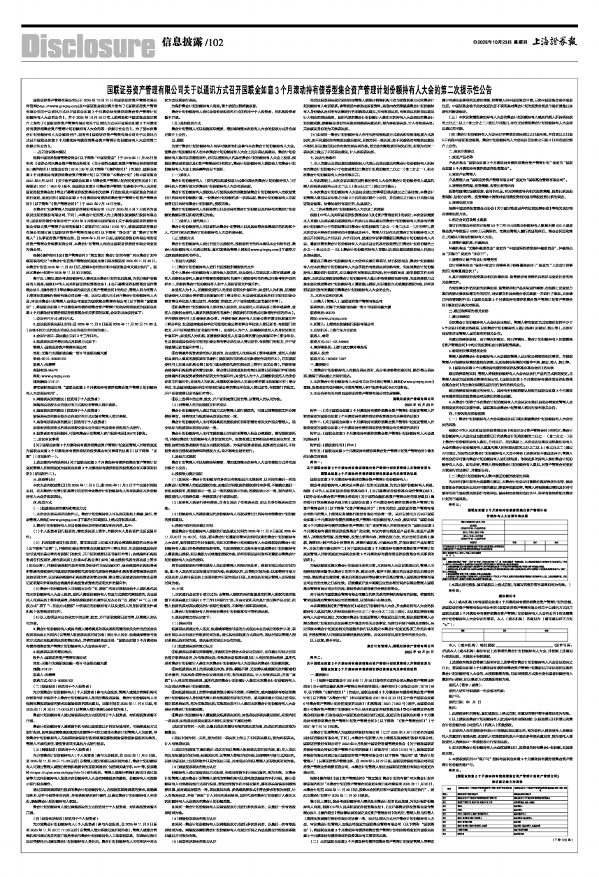 国联证券资产管理有限公司已于2025年10月21日在国联证券资产管理有限公司官网(http://www.glzqzg.com)及中国证监会规定媒介发布了《国联证券资产管理有限公司关于以通讯方式召开国联金如意3个月滚动持有债券型集合资产管理计划份额持有人大会的公告》,并于2025年10月22日在上述网站和中国证监会规定媒介上发布了《国联证券资产管理有限公司关于以通讯方式召开国联金如意3个月滚动持有债券型集合资产管理计划份额持有人大会的第一次提示性公告》,为了使本次集合计划份额持有人大会顺利召开,现发布《国联证券资产管理有限公司关于以通讯方式召开国联金如意3个月滚动持有债券型集合资产管理计划份额持有人大会的第二次提示性公告》。