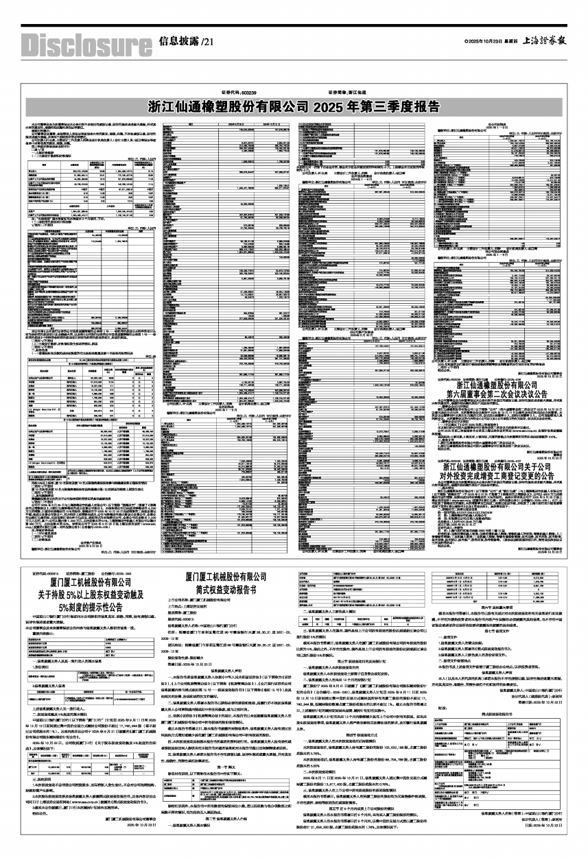 浙江仙通橡塑股份有限公司 2025年第三季度报告