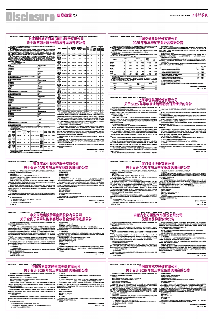 (二)投资者可于2025年10月30日(星期四)至11月5日(星期三)16:00前登录上证路演中心网站首页,点击“提问预征集”栏目(http://roadshow.sseinfo.com/questionCollection.do),根据活动时间选中本次活动,或通过公司邮箱ir@chinacrt.com向公司提问,公司将在说明会上对投资者普遍关注的问题进行回答。