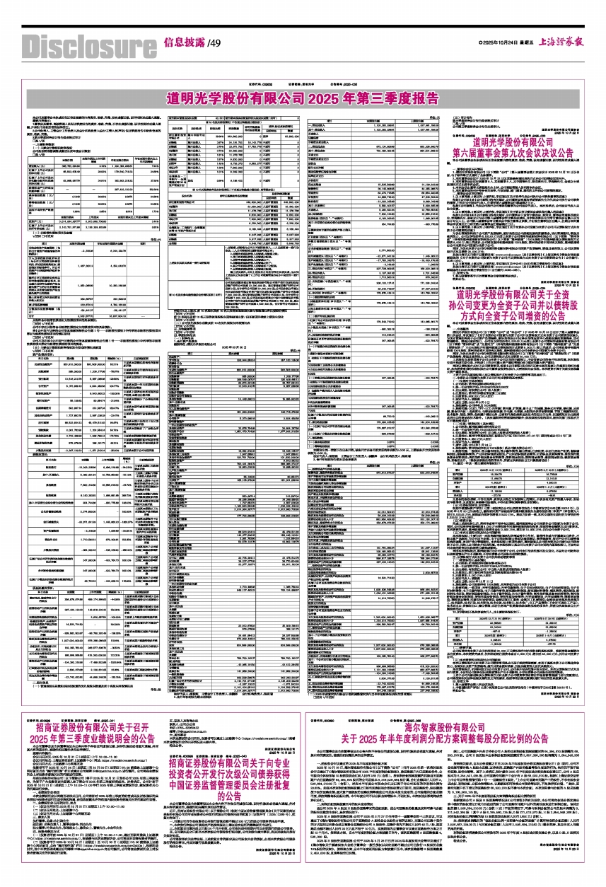 证券代码:002632 证券简称:道明光学 公告编号:2025-033