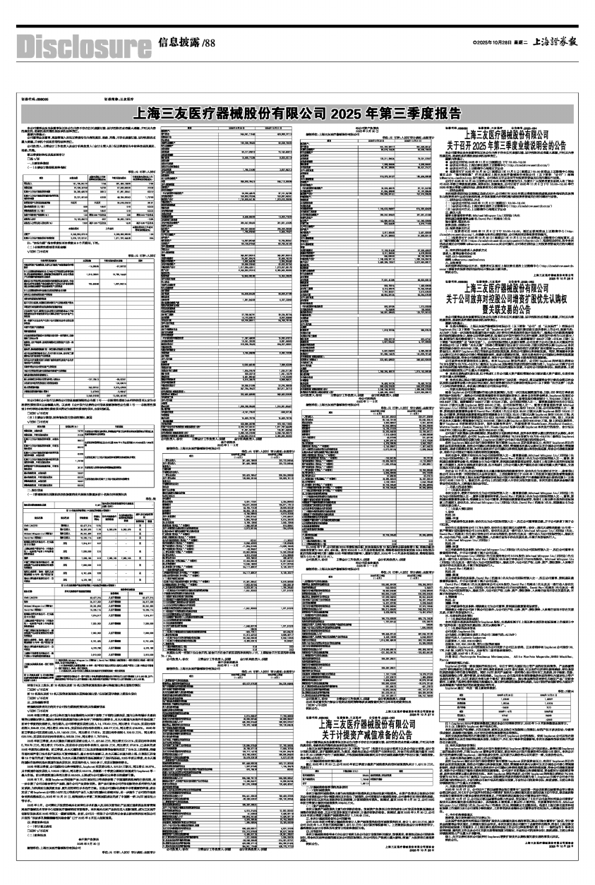 上海三友医疗器械股份有限公司 2025年第三季度报告