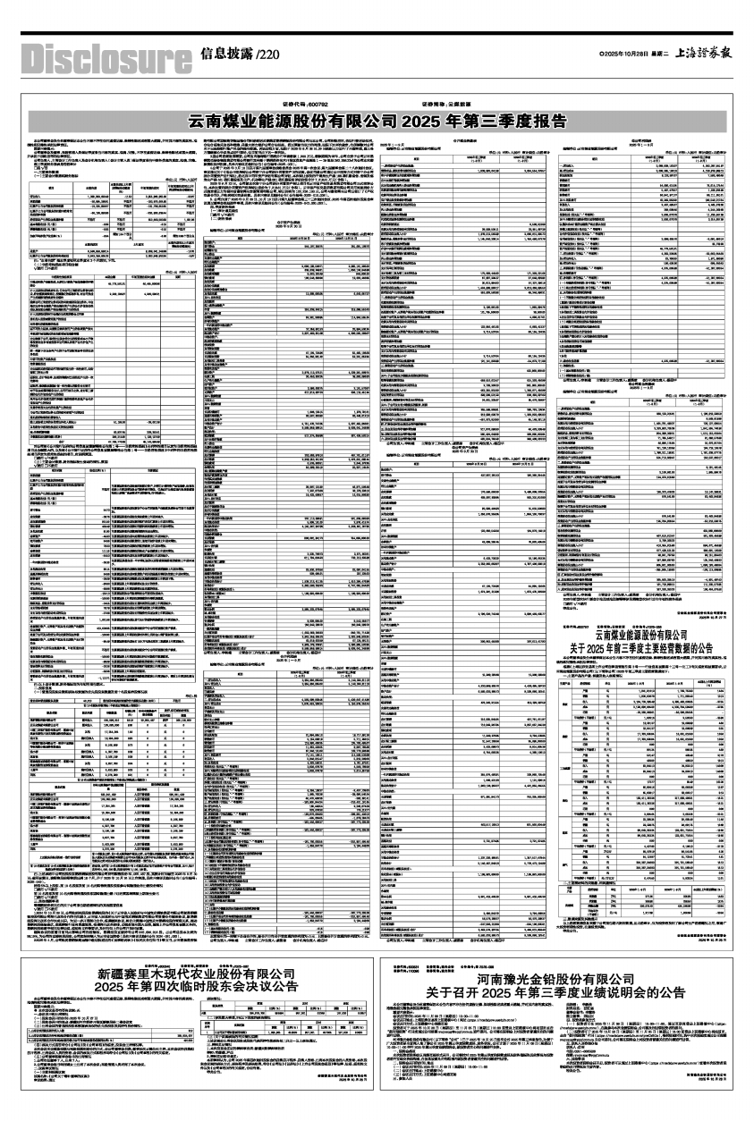 云南煤业能源股份有限公司2025年第三季度报告