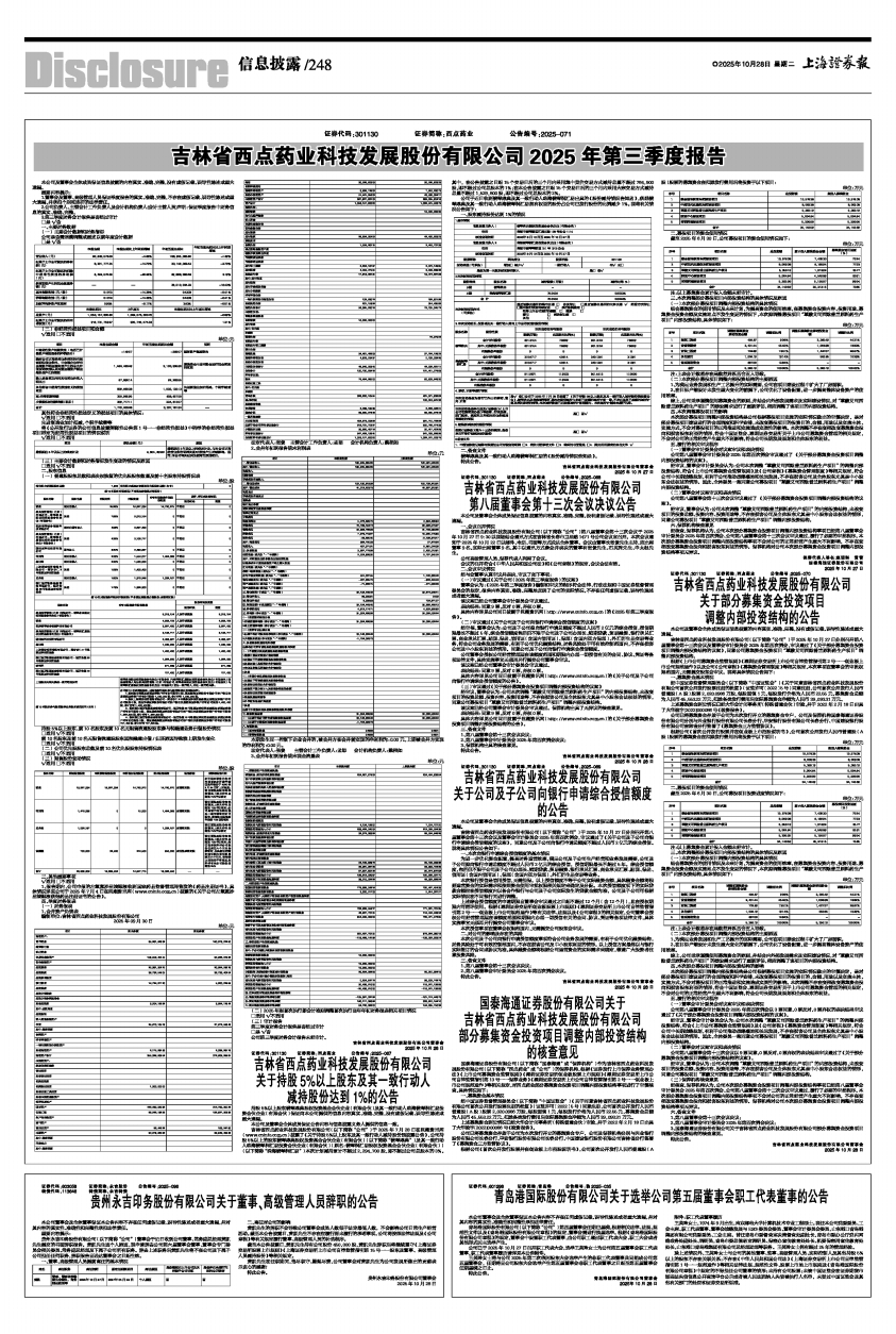 吉林省西点药业科技发展股份有限公司2025年第三季度报告