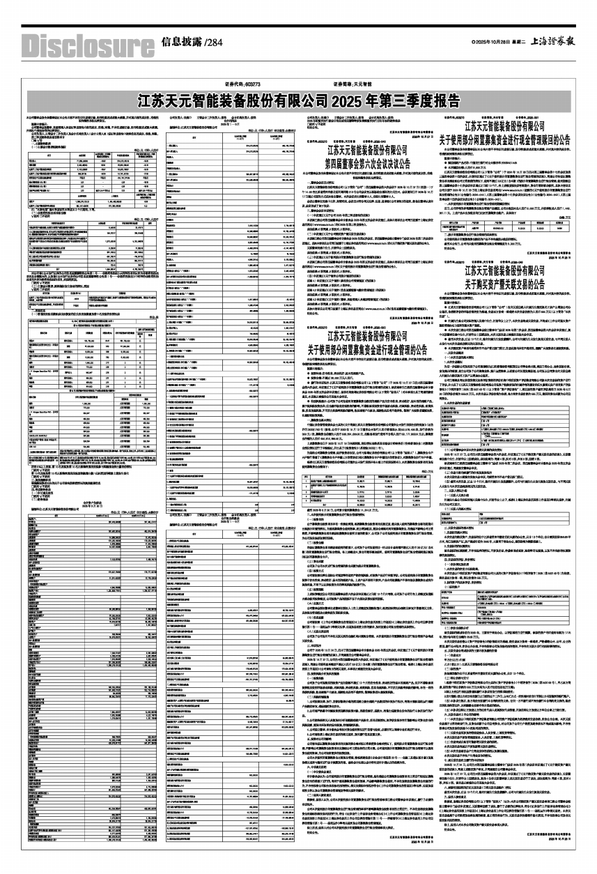 江苏天元智能装备股份有限公司2025年第三季度报告