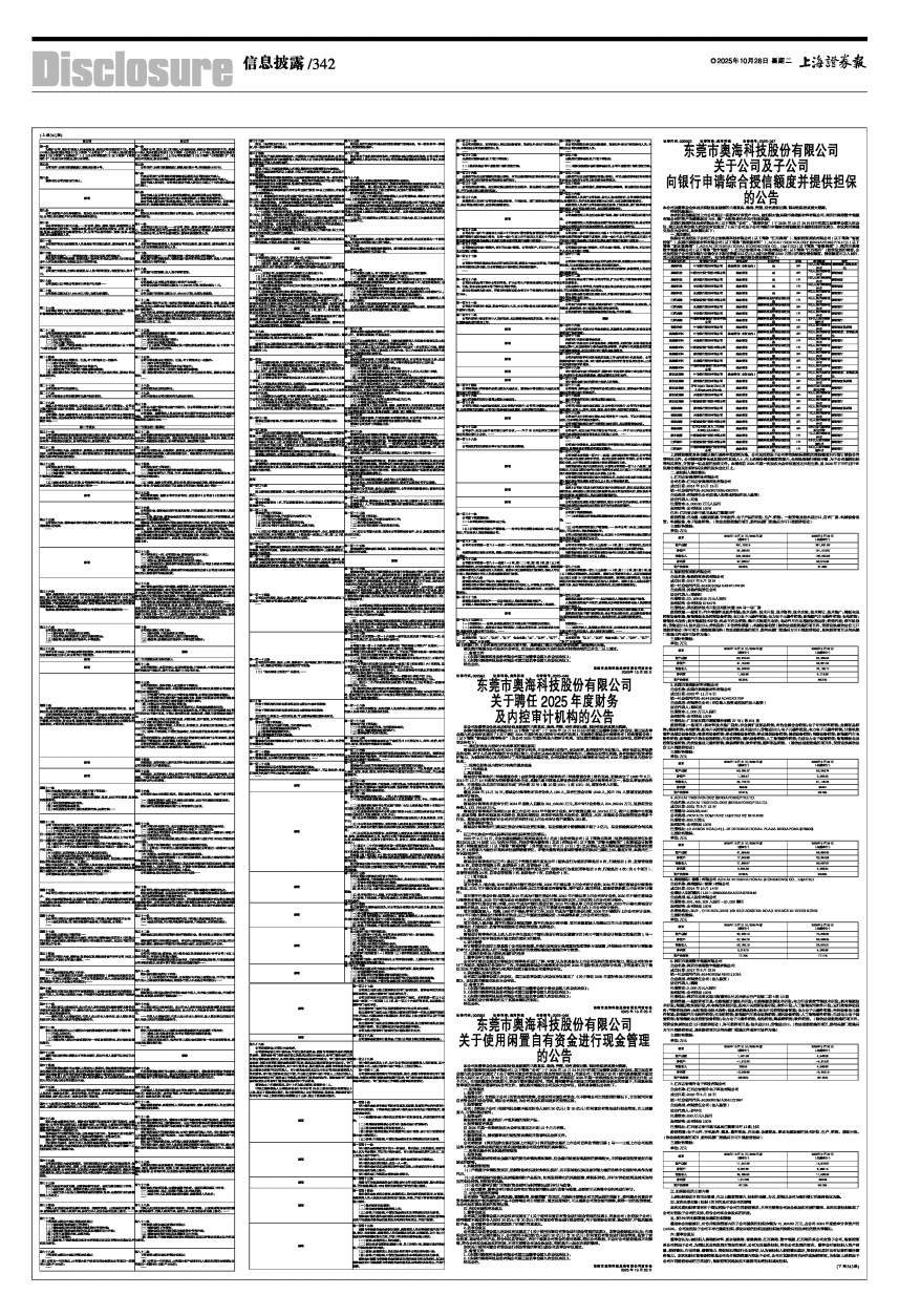 东莞市奥海科技股份有限公司(以下简称“公司”、“奥海科技”)于2025年10月24日召开的第三届董事会第九次会议、第三届监事会第九次会议审议通过了《关于公司及子公司向银行申请综合授信额度并提供担保的议案》。本议案尚需提交股东大会审议,具体情况如下: