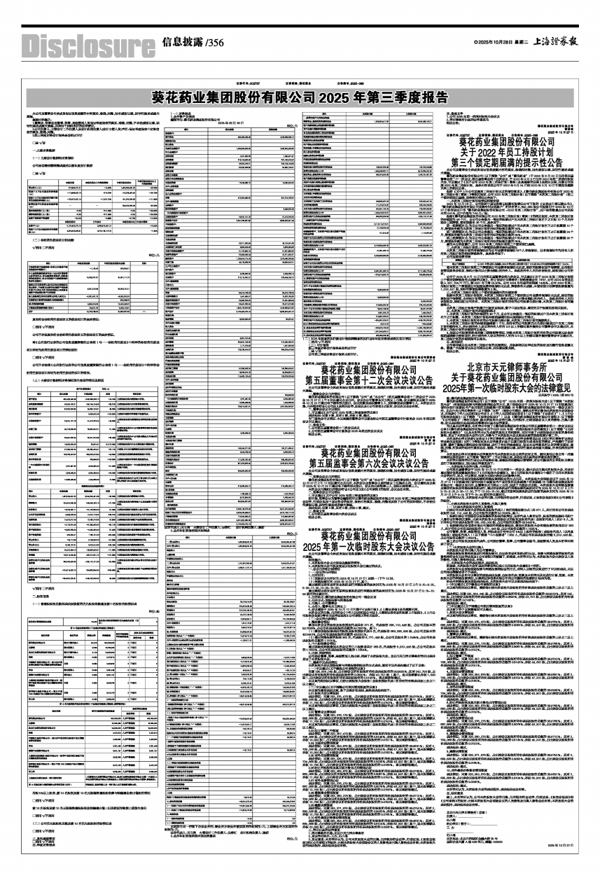 经审核,监事会认为董事会编制和审议葵花药业集团股份有限公司2025年第三季度报告的程序符合法律、行政法规及中国证监会的规定,报告内容真实、准确、完整地反映了公司的实际情况,不存在任何虚假记载、误导性陈述或者重大遗漏。