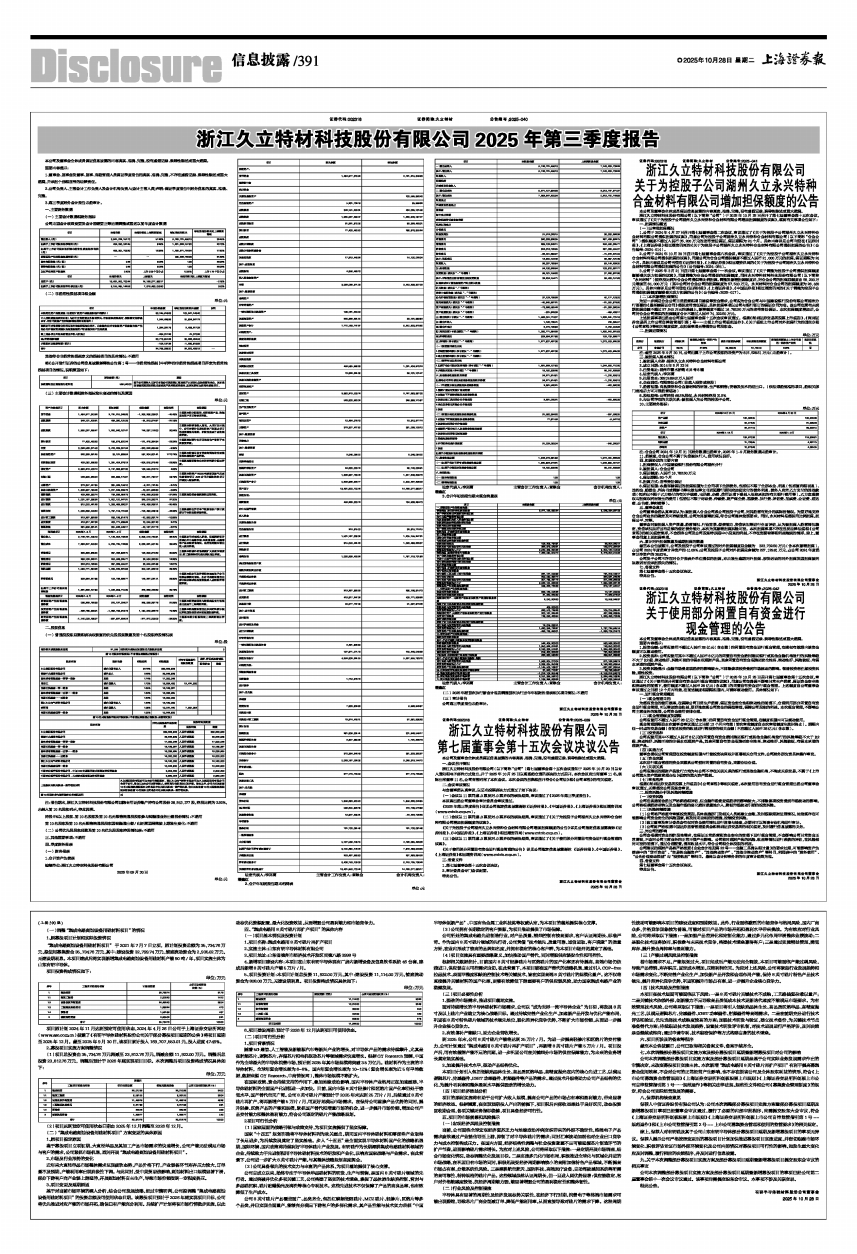 浙江久立特材科技股份有限公司2025年第三季度报告