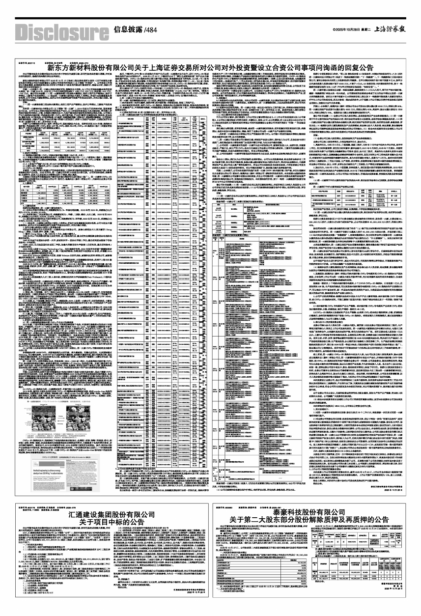 2025年10月27日,公司收到第二大股东泰豪集团关于部分股份解除质押及股份再质押的通知,具体情况如下: