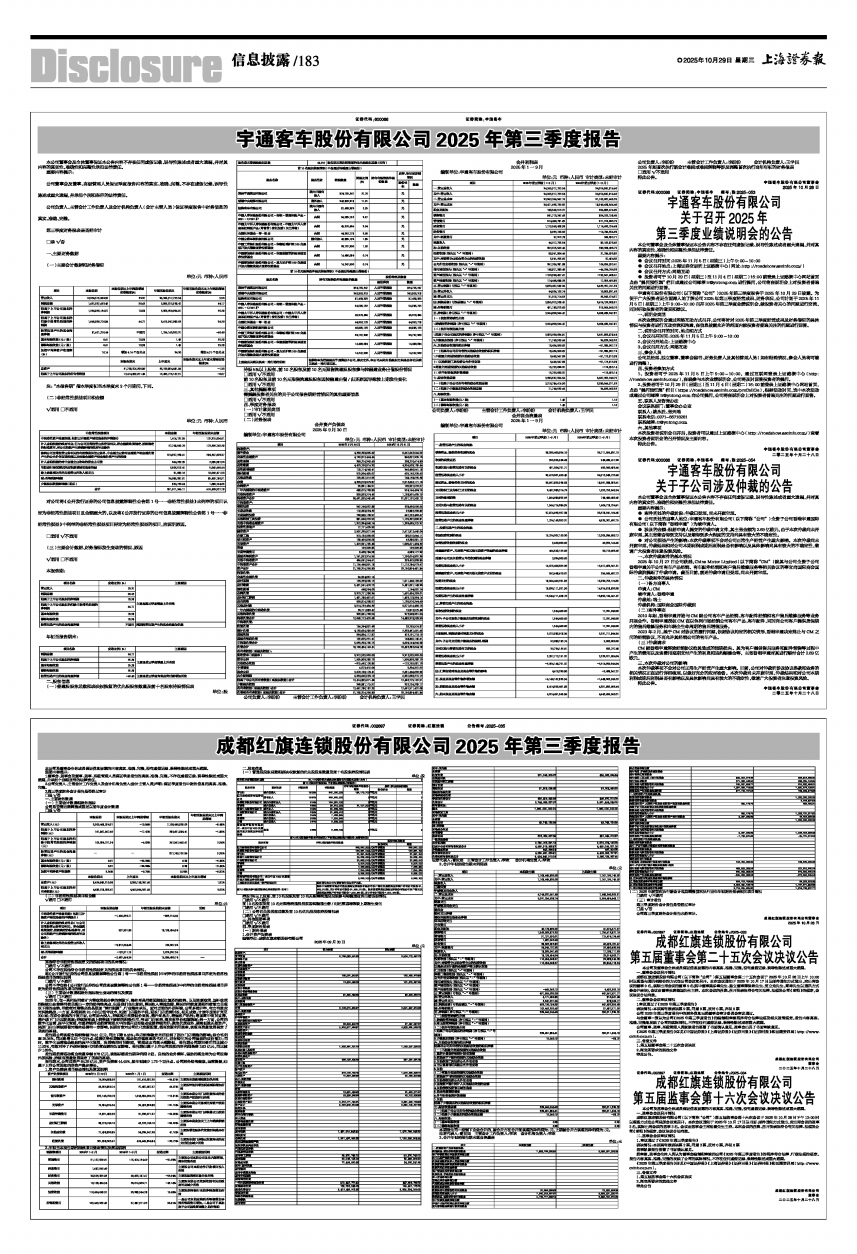 成都红旗连锁股份有限公司(以下简称“公司”)第五届董事会第二十五次会议于 2025年10月28日上午10:00时以现场与通讯相结合的方式在公司会议室召开。本次会议通知于2025年10月17日以邮件通知方式发出,应出席会议的董事9名,实际出席会议的董事 9名(其中董事吴乐峰先生、独立董事谭洪涛先生、贺立龙先生、周涛先生以通讯方式参会并表决),会议由董事长袁继国先生主持。本次会议的召集、召开及表决符合有关法律、法规及公司《章程》的规定,会议决议合法有效。